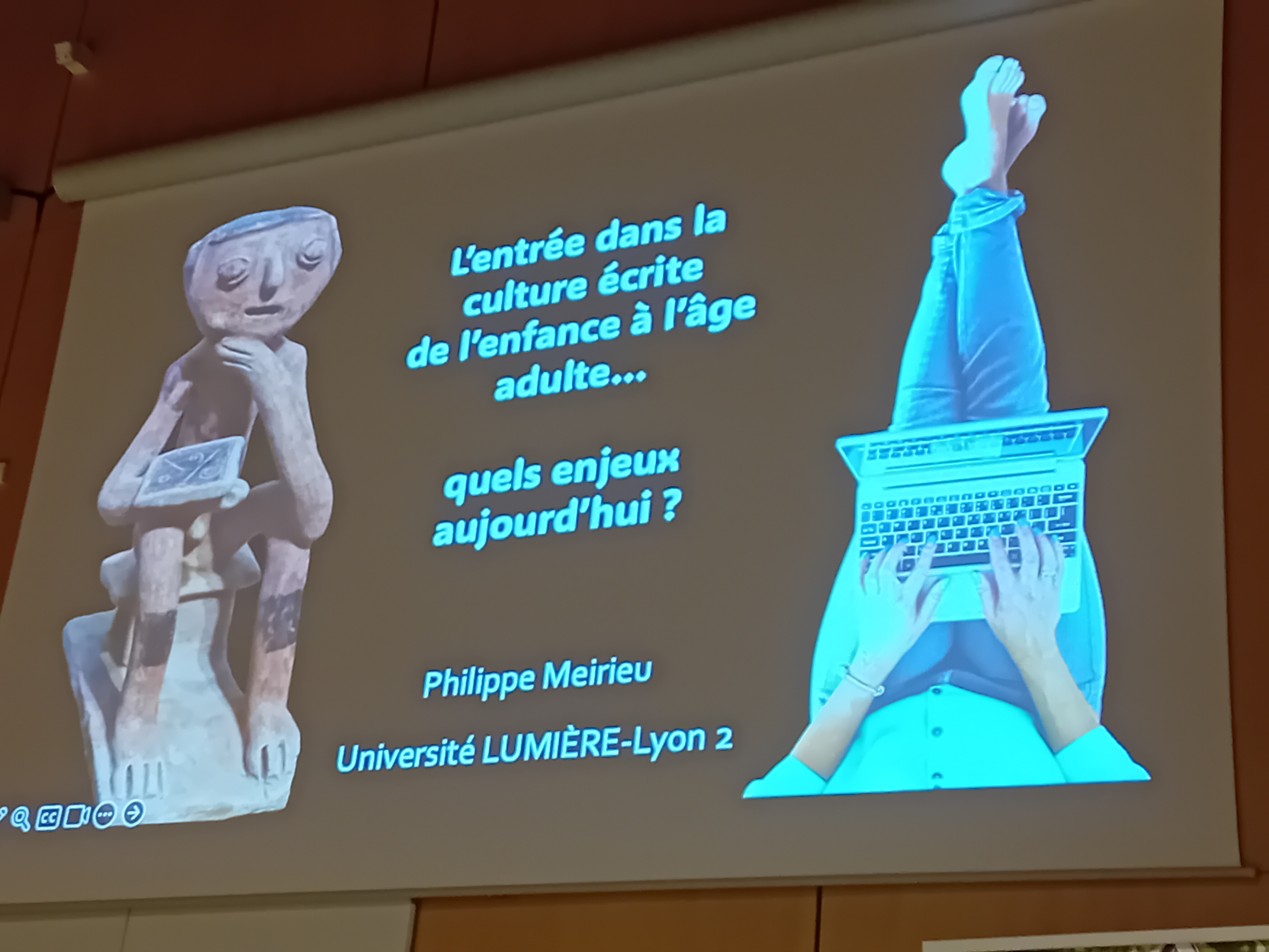 Spécialiste renommé en sciences de l’éducation et de la pédagogie, Mr Meirieu a abordé l’entrée dans la culture écrite de l’enfance à l’âge adulte. Alors que les écrans sont présents dans notre quotidien, il a notamment rappelé l’importance d’accorder du temps et de l’attention à l’écrit.